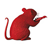 色を赤に変化させるだけで“可愛いさ”と“危うさ”が共存し、ネズミに危険なエロスな香りを漂わさせています。